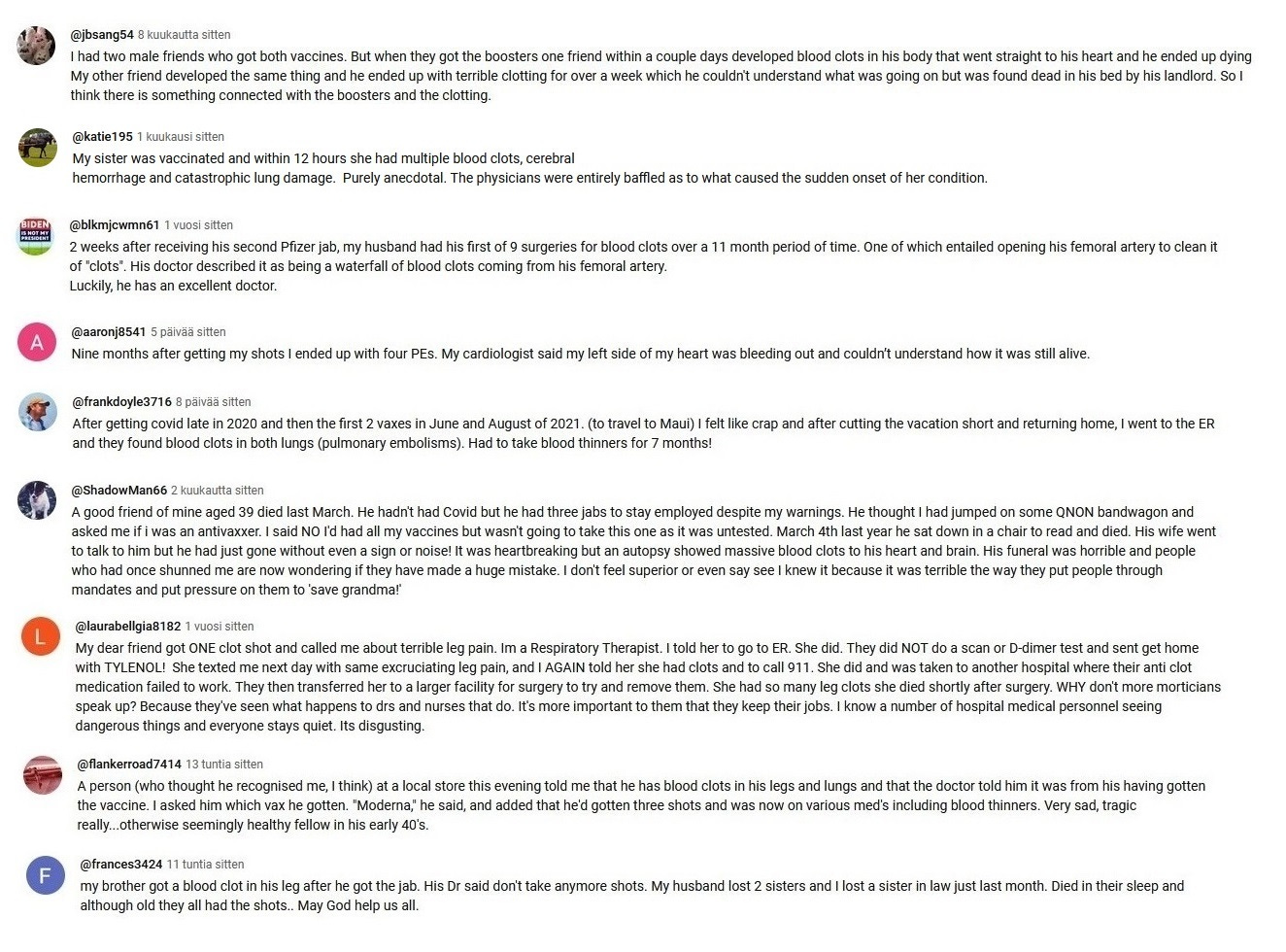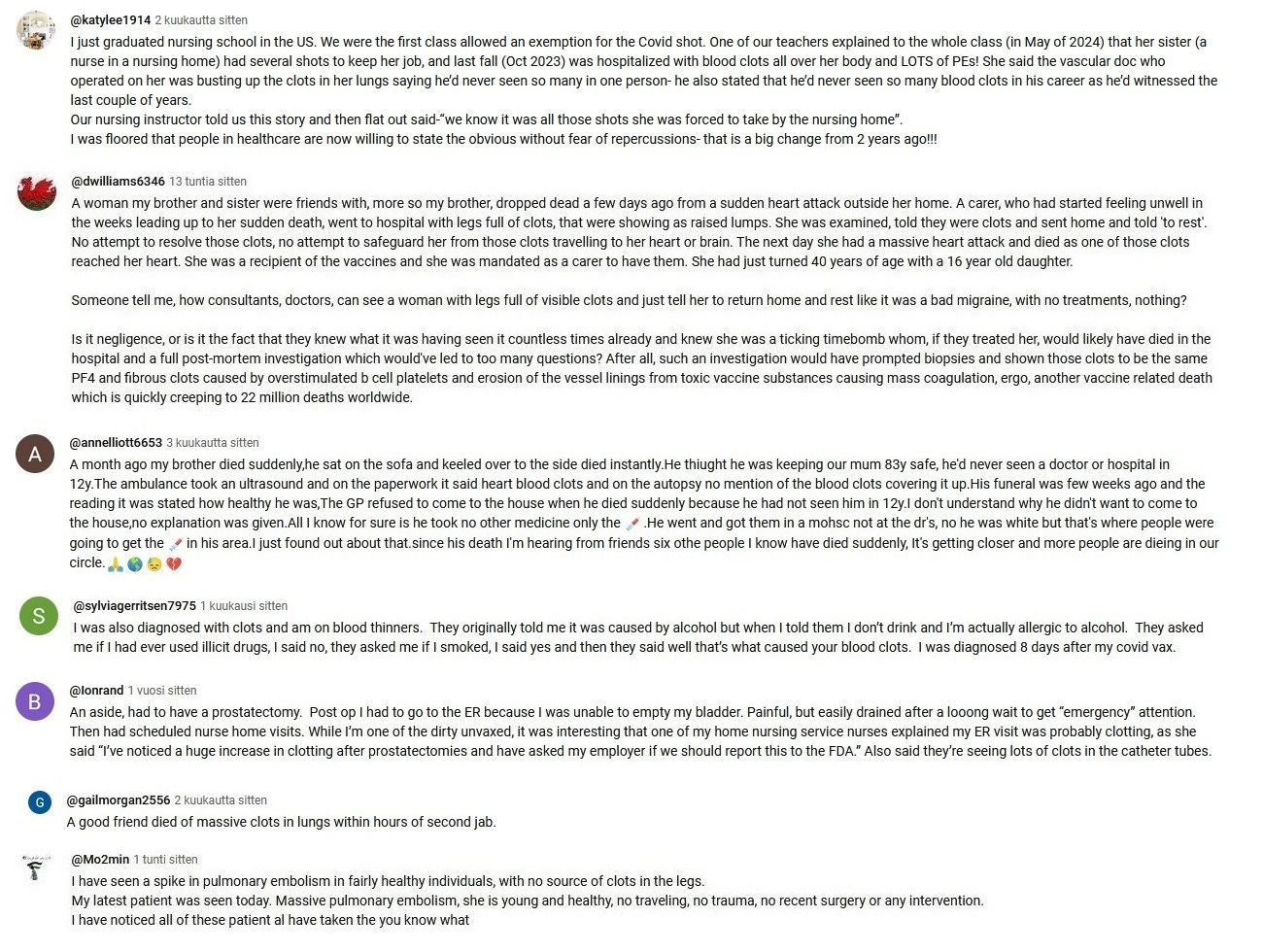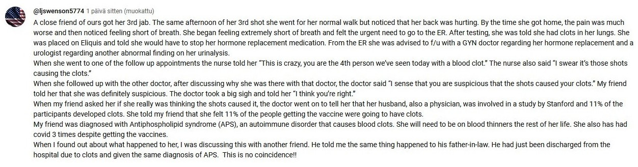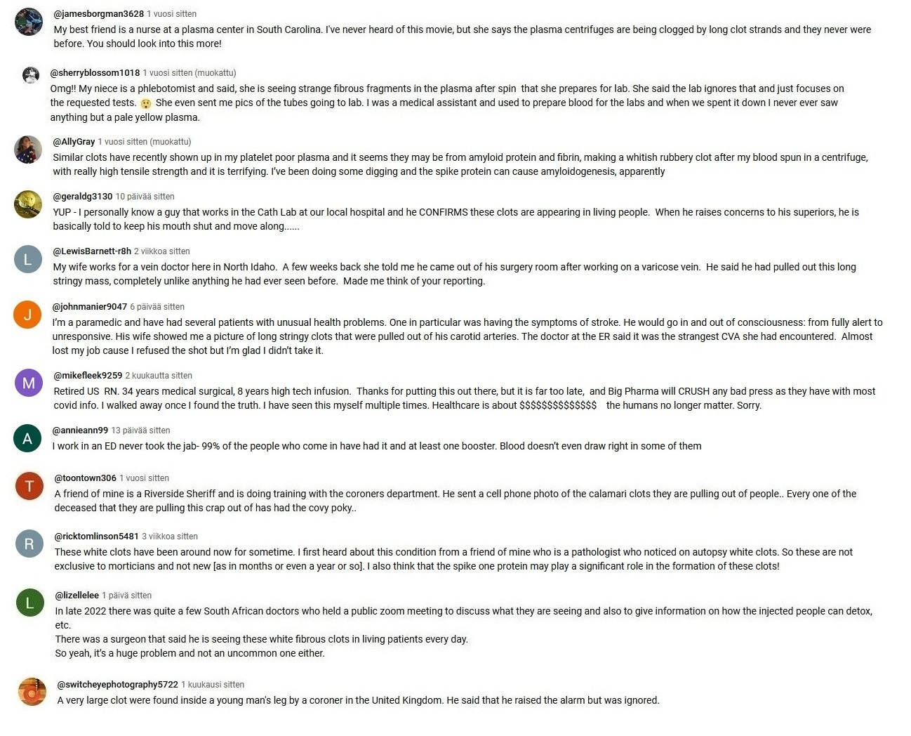 Since the end of the year 2023 I have been taking screenshots from Youtube comments that deal with the white fibrous clots and other covid vaccine side effects.