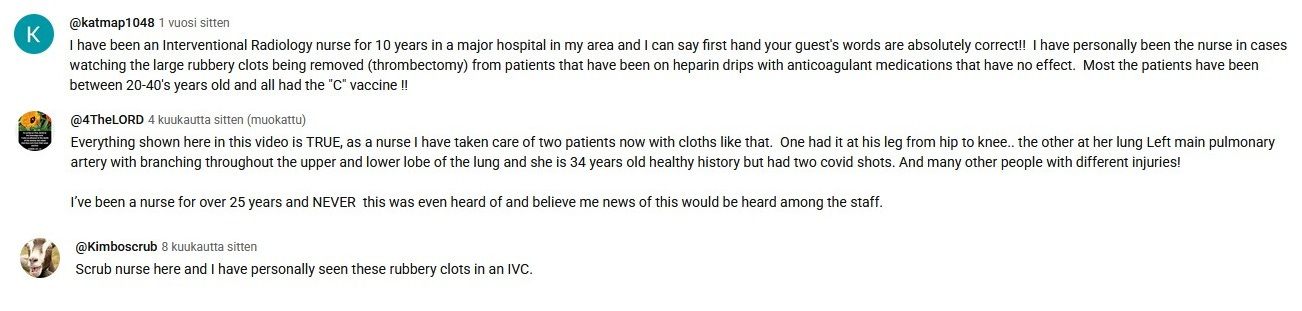 Also the three first comments in the second image are very interesting. They reveal that these clots are also seen in blood plasma, clogging up centrifuges in plasma centers, etc. So it's not just surgeons and cath labs that are seeing them, but those who work with blood plasma are also having trouble with these clots.